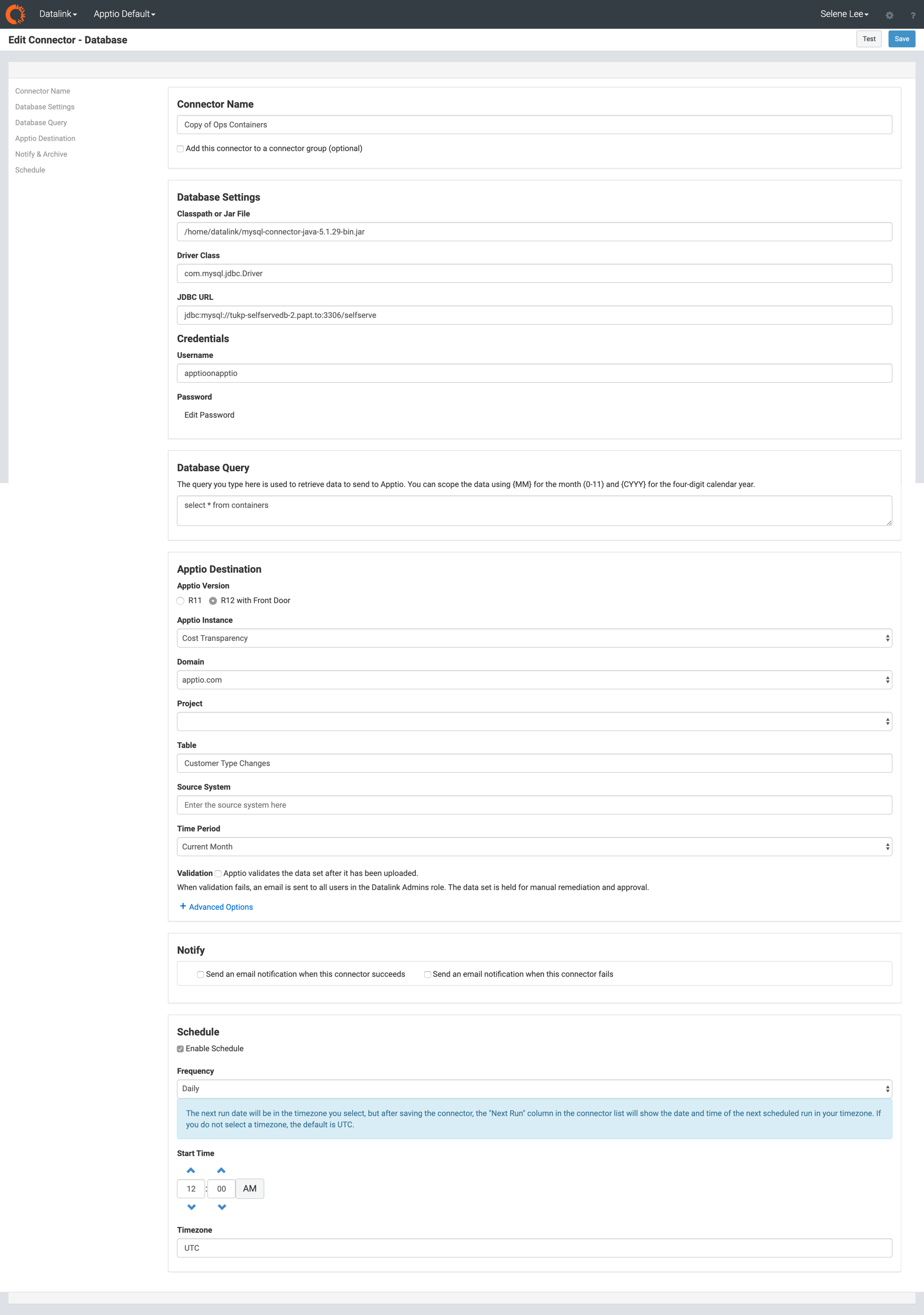 As a user of DataLink, I want to create a connection that uploads data from my source system to Apptio on a regular basis.