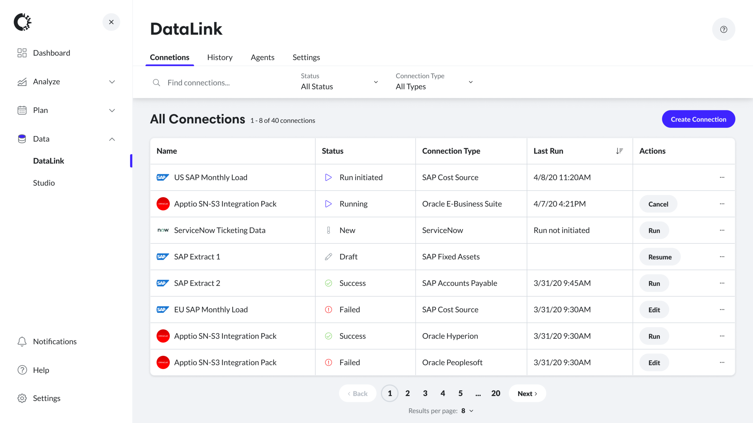 They set up and monitor connections to make sure all of their data is flowing successfully to Apptio so that they can create reports based on the latest data.
