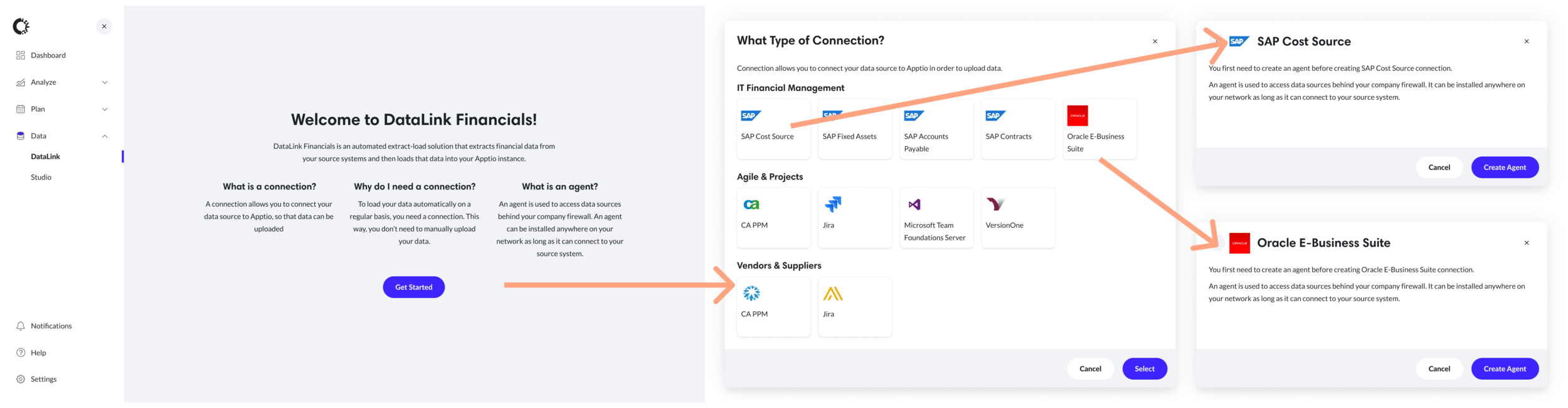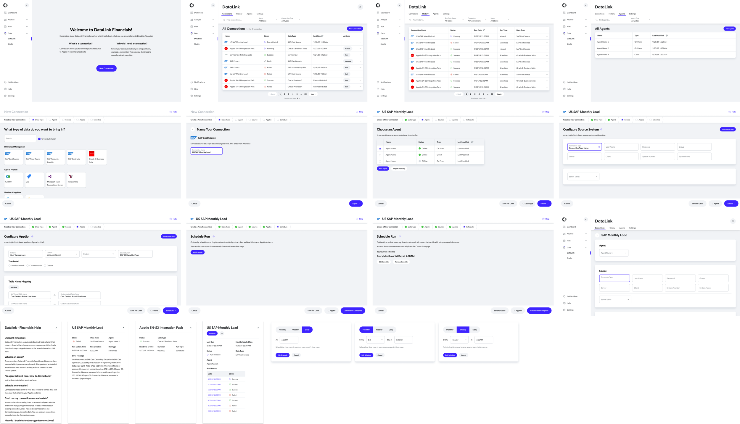 In addition, existing experience focuses on an agent that connects users’ source to Apptio’s. However, I thought that the experience should focus on connection itself. Users come to DataLink thinking they want to take actions based on connections not agents.