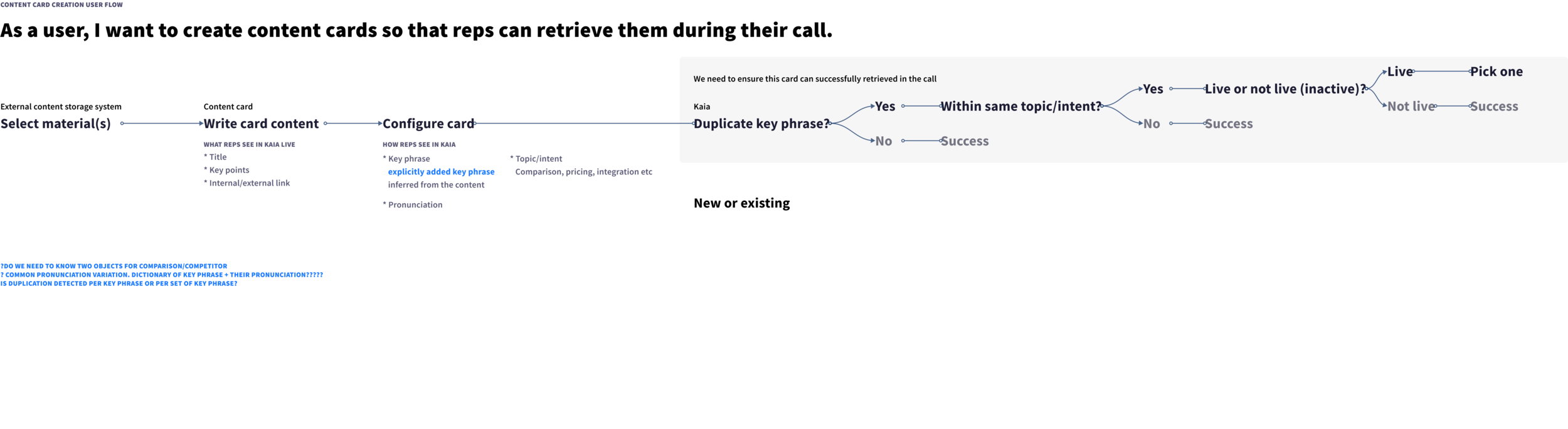 During live calls, there could be some cases where 1. Kaia didn’t show the content card as it couldn’t capture keywords or a conversation topic. 2. Reps want to pull up a card without mentioning relevant keywords. The second case was also brought up multiple times during user research sessions.
